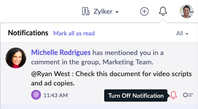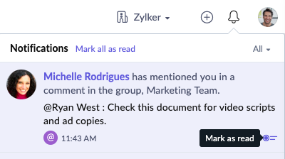 Marking a notification as read/unread in Zoho Connect.