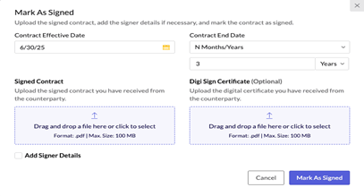 Managing Signature Process of a Counterparty Initiated Contract