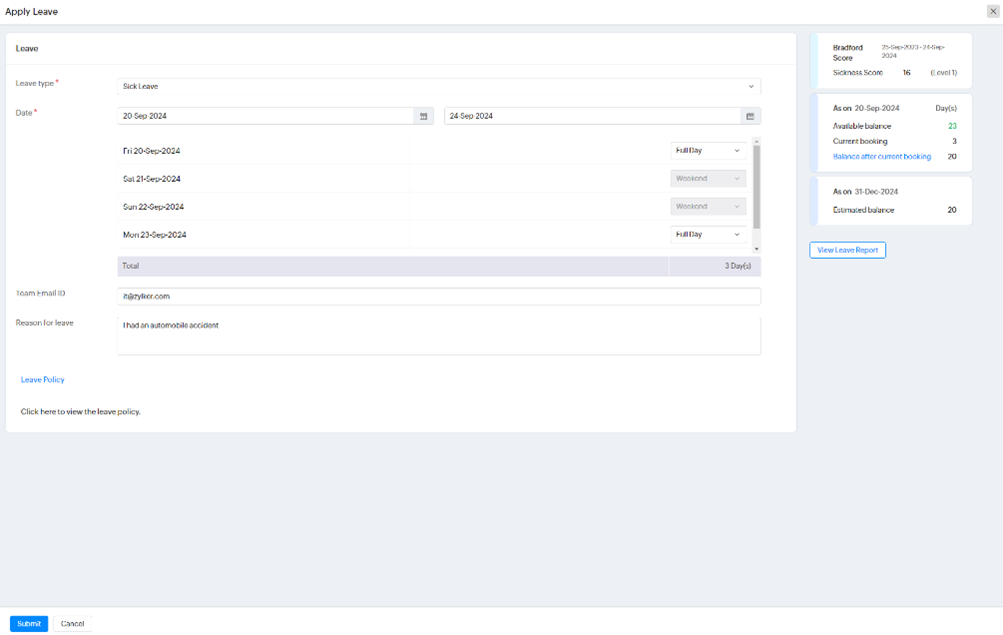 Leave Service for Employees